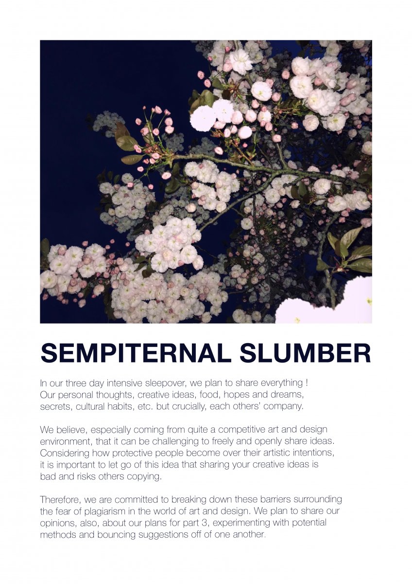 We love sharing our thoughts, feelings and ideas with one another. In our three day intensive sleepover, we plan to share everything ! Our personal thoughts, creative ideas, food, hopes and dreams, secrets, cultural habits, etc. but crucially, each others’ company.