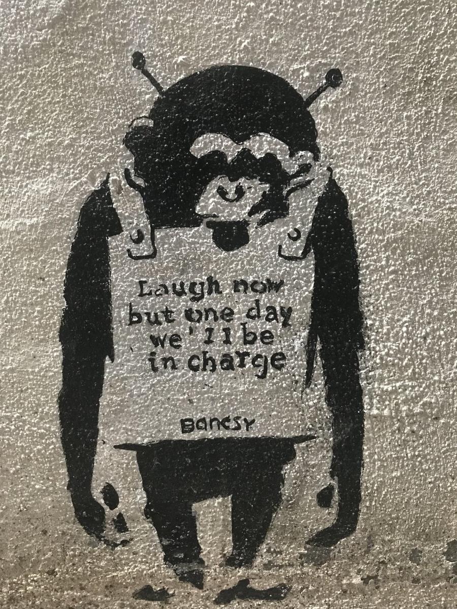 London is home to many street and graffiti artists. Although not from London, Banksy - whose work is photographed here - has created work all over the city. His "Laugh now" monkey first appeared in 2002, and since, has become an iconic stencil that he has recreated in various different place. I particularly like the way in which the blocked and bold lettering is softened by the spray paint. I also like how the position of this piece is down a lane, barely ever used and so subtly placed. For me, it brings a whole other level of appreciation to the lowkey nature of the graffiti.