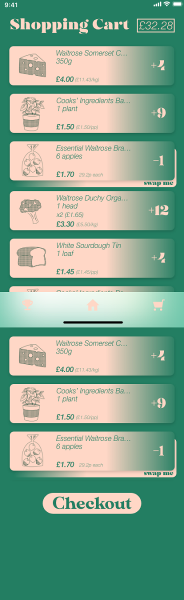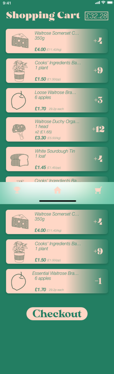 iconography for purchased products on our app prototype, created by Megan on illustrator.