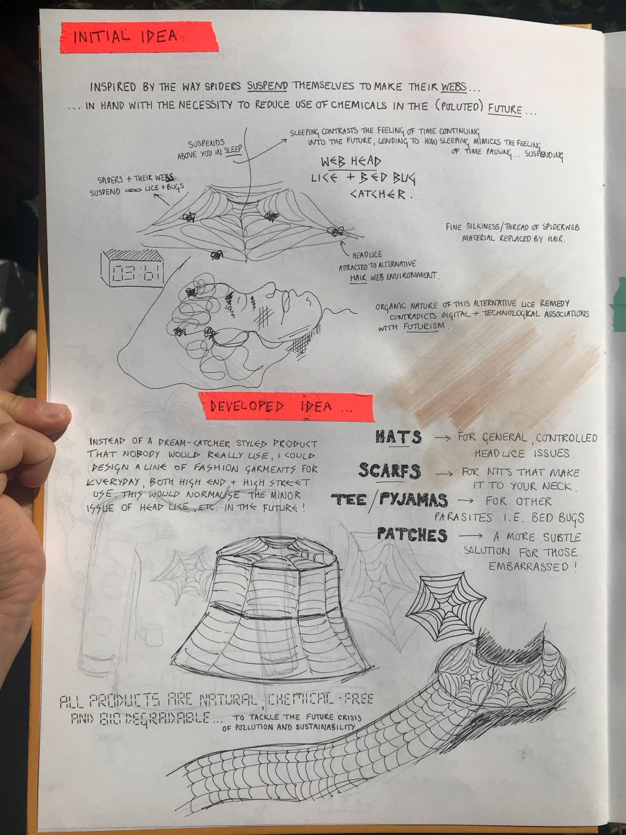- Good idea development visible in sketchbook - attention to detail, enhanced by annotations