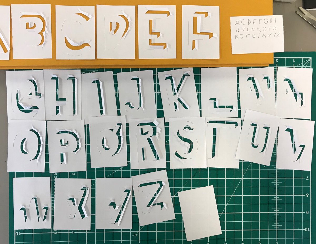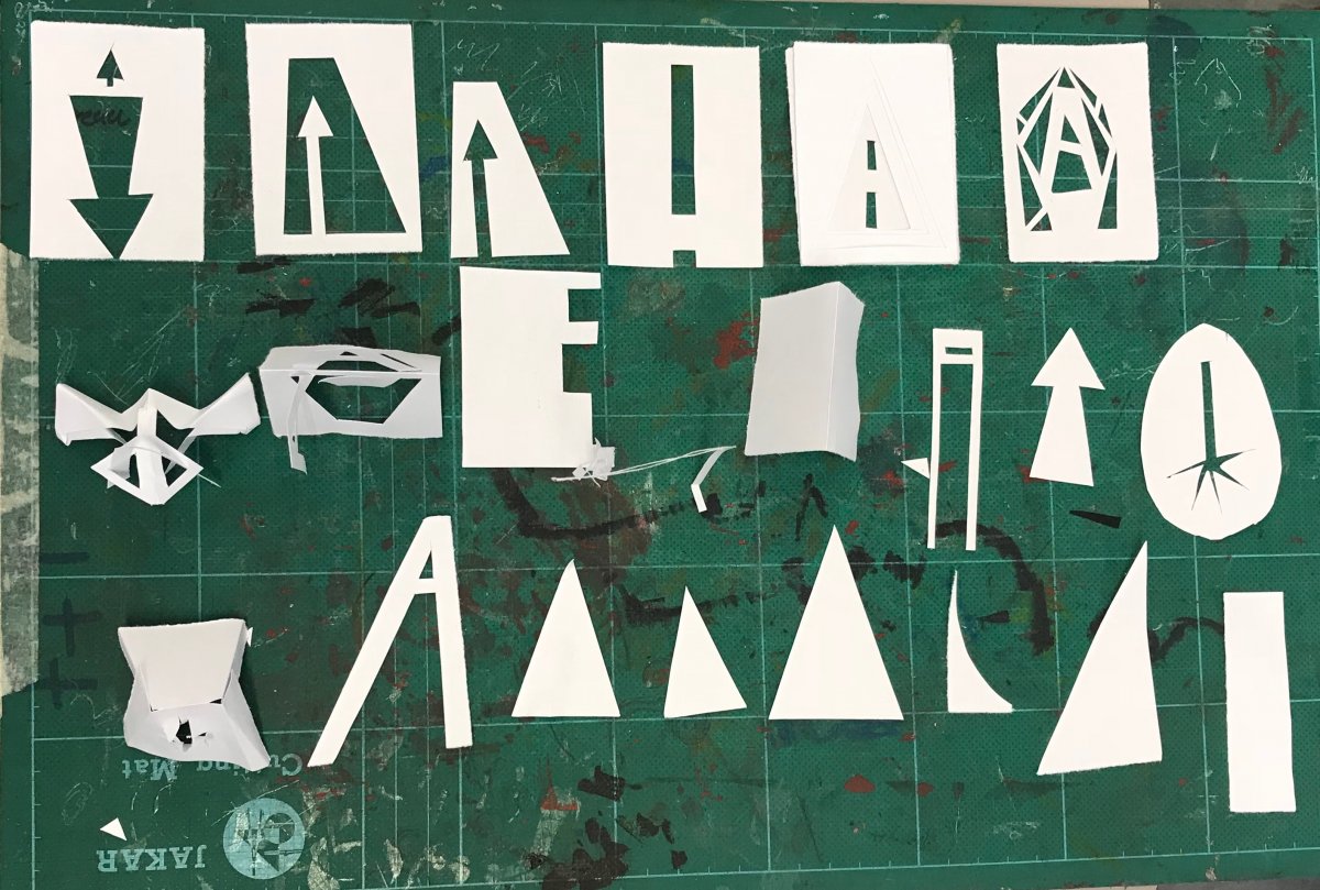 I immediately struggled with the time constraints of the initial 16 letter challenge. I feel that I fell into the trap of imitating fonts that already exist, rather than focusing on unique and abstract ways of creating new types. Although I am happy with the approach I reached in the end, emphasising the shadows of the lettering and imitating interesting folds, utilising the negative space, I didn't use my cutting skills to the fullest. I could have thought about typical associations with the letter "A", and turned them on their heads. This is something I noticed a few fellow students do really well: one student took the typical associations of "A"s as triangle shapes, and completely rejected it by creating A shapes out of circles, which I found really inspiring, because it was such a clever manipulation of the format of the conventional A. Another student created various "A" letters in the style of arrows. The way in which the head of the arrow reflected the bridge across the body of the capital A was such a subtle tie to the original format of the letter, but simultaneously abstract. This interested me, however I think it would be difficult to continue as a design for the rest of the alphabet. Taking away what I have learned by looking at other students' work, I plan to make my own lettering more abstract by skewing the proportions of the letters, and also playing around with the illusions of folds and shadows with my font design - something I believe makes my ideas more original and abstract.