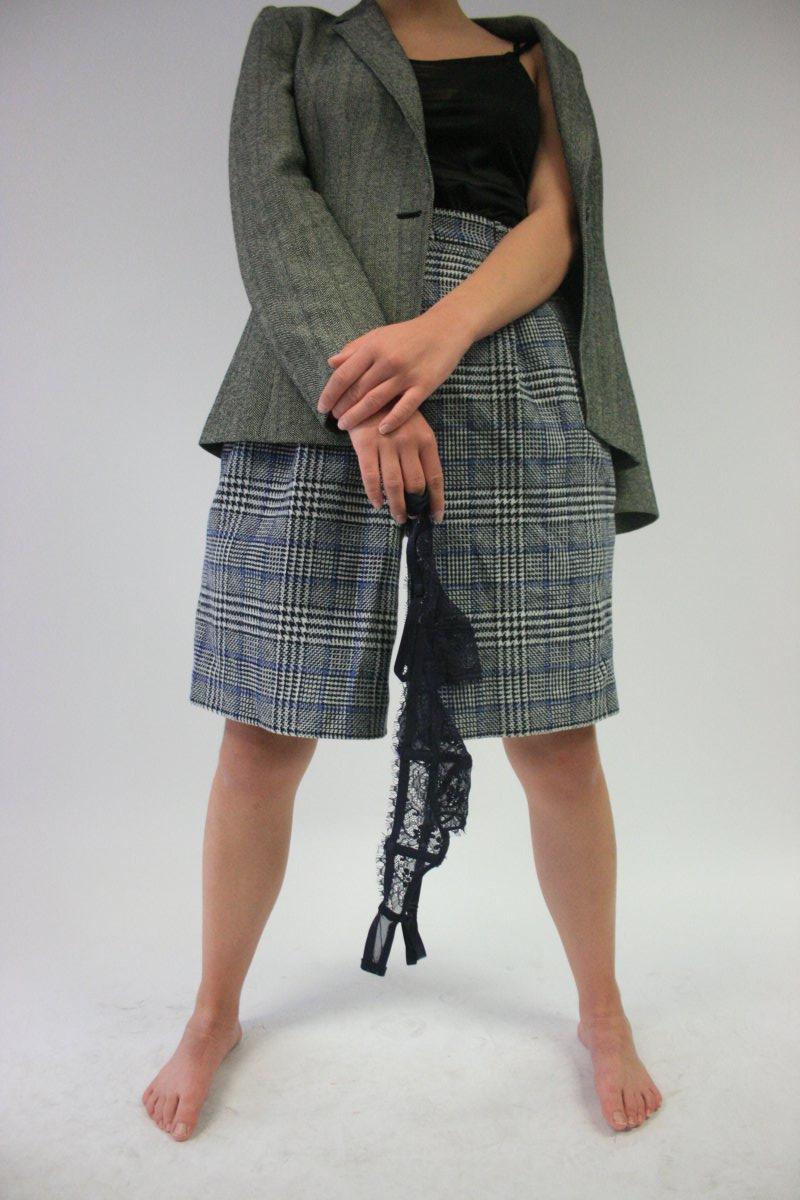 - For this look, we combined the concept of typically "masculine" suits with delicate, typically "feminine" silk under garments. I asked Hanna to model without shoes, the rougher, more playful look lending to the schoolboy aesthetic. Furthermore, by having her hold the lacy bra, the dominant male style of the outfit juxtaposes the accessorising feature of the bra.