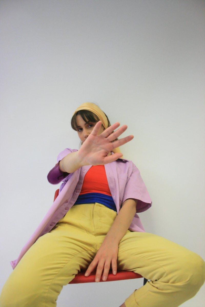 - Unintentionally, layering these brightly coloured clothes resulted in Hanna modelling a very covering outfit. All of the coloured garments are plain, reinforcing the blocking aspect of the title, "blocking" also connoting with "covering" in a synonymous way.