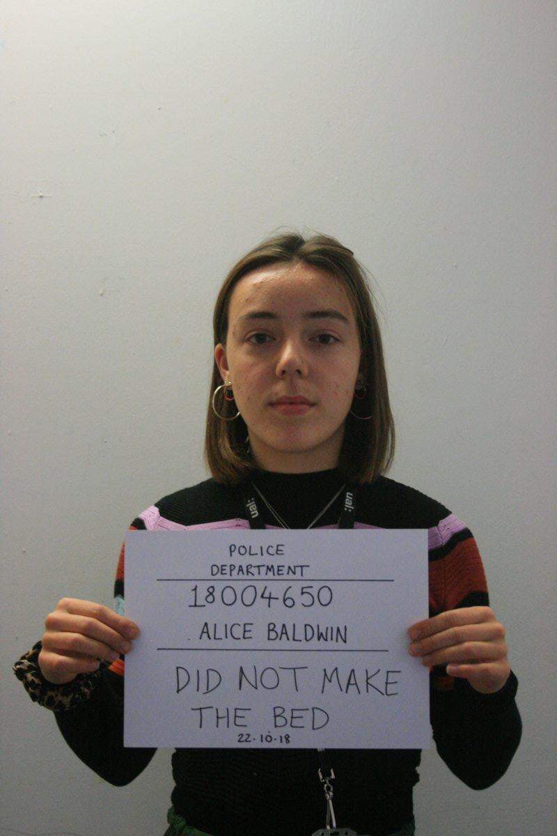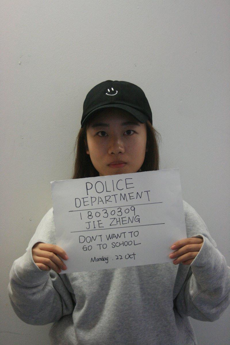 Having been given our quote to base this interactive project around, Jie, Mogana and I began brainstorming about potential meanings of the quote. What I found most interesting was that because of the language barriers, the girls somewhat interpreted the word "lie" as in to tell a lie, rather than to lie down. We all felt really inspired to follow this alternative approach to the quote. In the context of "as you make your bed, and you must lie upon it", accepting the consequences for your actions can more often than not be avoided by lying. Thus, we thought about guilt, innocence, truth and lies. Our initial visualisations were these photographs, following the style of a prison mugshot: police department, student number, name, crime committed (the truth behind the lie told, for instance, "did not make the bed", comically following the origins of the quote) and date.