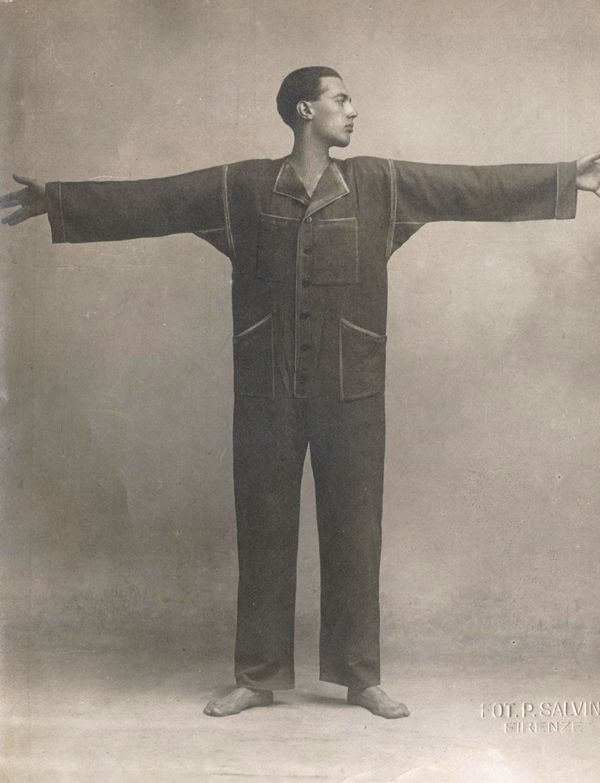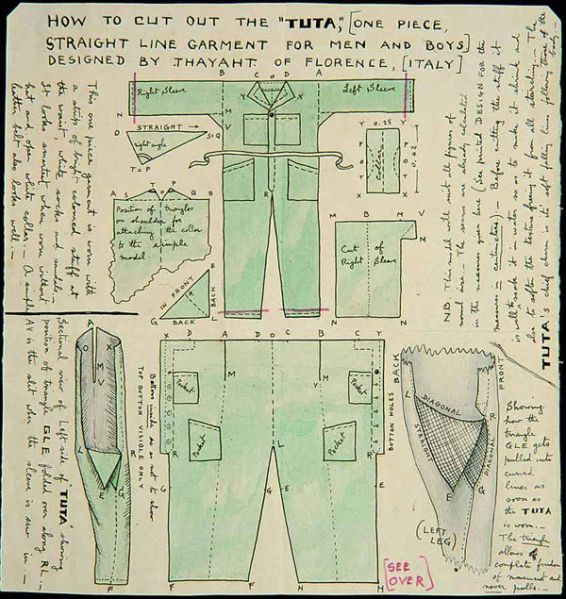 Giacomo Balla was a pioneer of the futurist style and movement. Notably he was a painter, however 1914 was the year Giacomo Balla experimented with futurism beyond paintings and sketches. He began designing furniture, as well as futurist “antineutral” clothing. Alongside him was Ernesto Michahelles, who like Balla, was creating clothing in the style of futurism – interestingly, Michahelles designed dungarees and denim overalls, not unlike those of my “webwear” idea!..